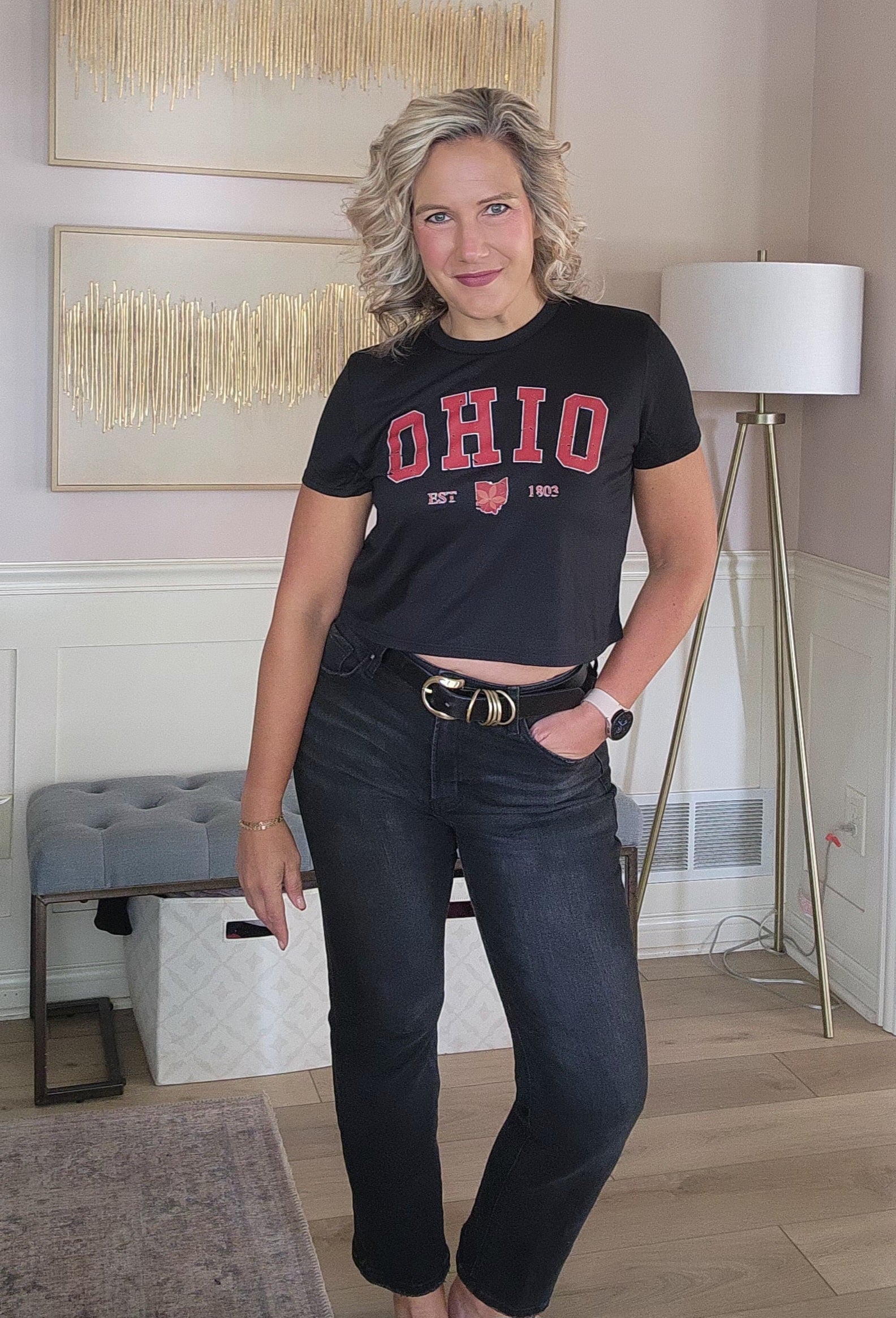 Super soft black Ohio crop tee.