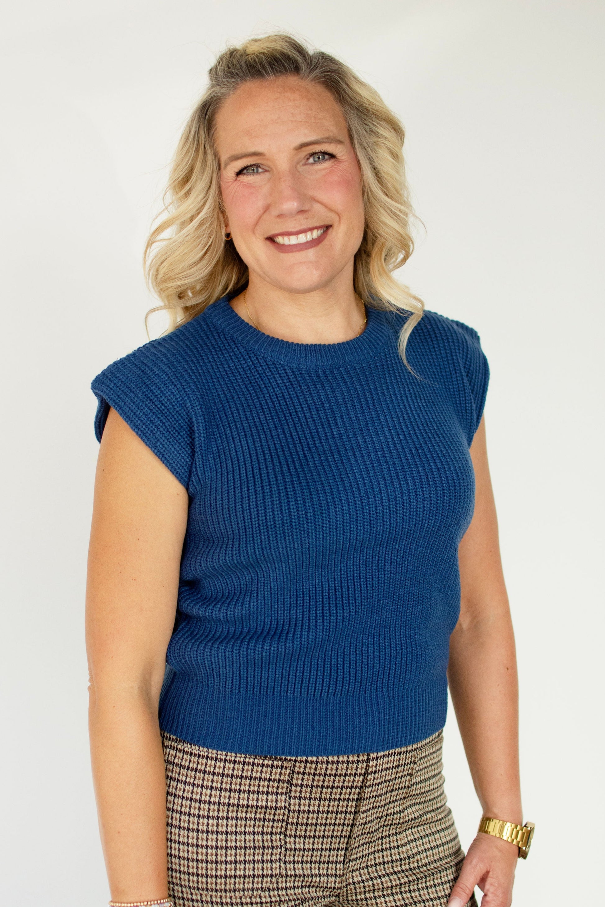 Gorgeous teal blue, crew neck sweater, with a drop shoulder. Soft, chunky knit and perfect for layering.